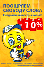 В период с 01.11.15 по 30.11.15 г. оставляйте отзывы о магазине (личное мнение об обслуживании, ассортименте, ценах) на сайте эдисонсвет.рф в разделе «Отзывы и предложения» и получайте скидку 10% на следующие покупки!