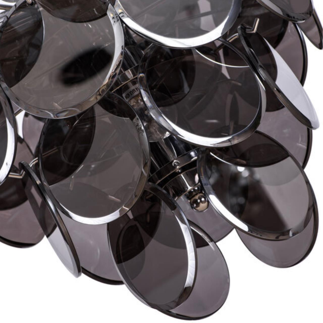 Невероятно яркая и футуристичная коллекция придаст интерьеру индивидуальности, и привнесет нотки столь модного сейчас стиля Midcenture. Декоративные стеклянные медальоны, с фасетированными краями, каскадом спускаются по люстре. Световые потоки отражаются в глянцевом блеске прозрачного стекла и разливаются яркими бликами по всему помещению.