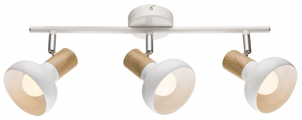 Спот поворотный металлический с 3 плафонами Rivoli Lorena выполнен в популярном стиле лофт. При этом универсальный дизайн данного настенно-потолочного спота позволяет использовать его в самых разных пространствах - от традиционных до современных. Удачным решением стало сочетание белого матового цвета плафонов с отделкой элементов под светлое дерево.