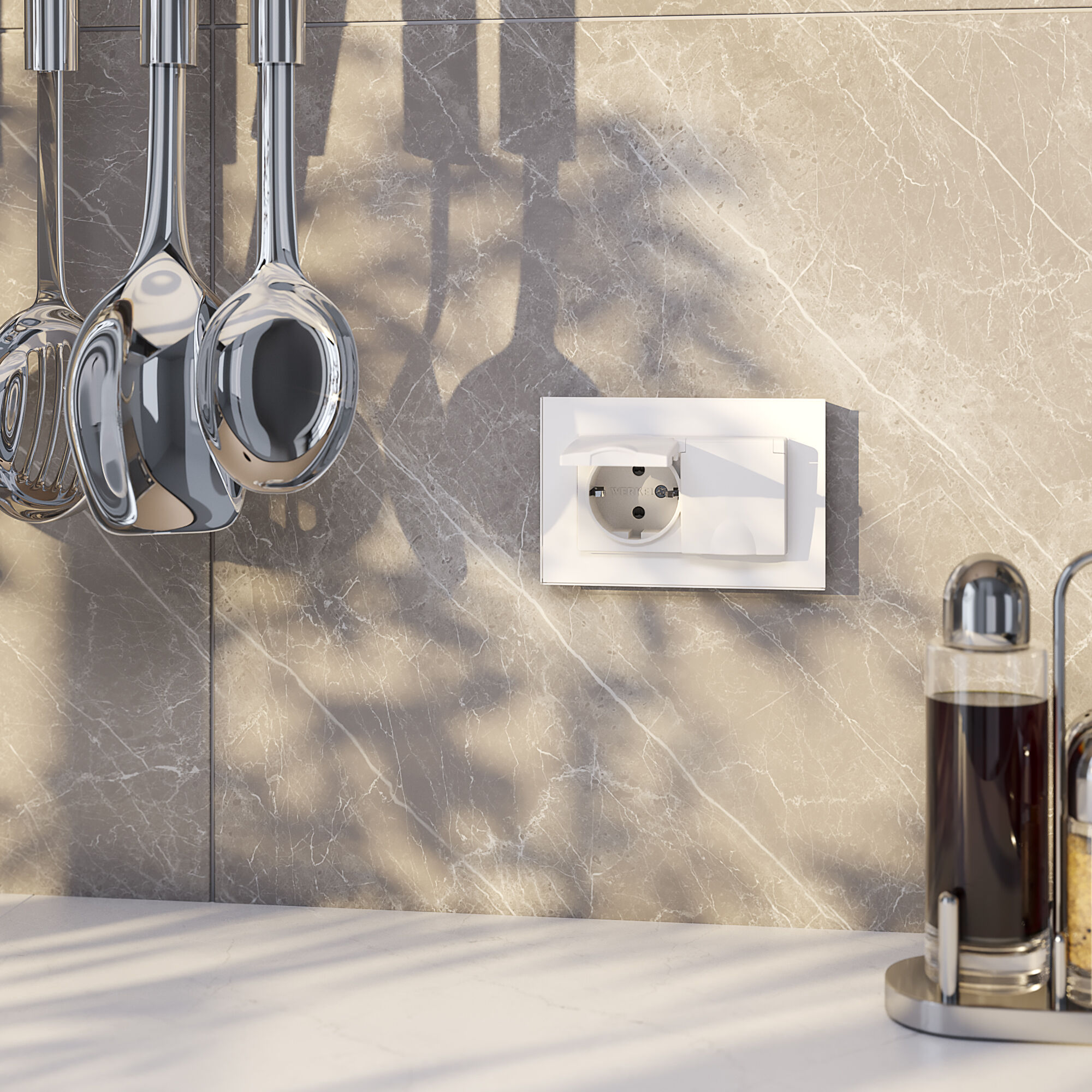 Двойная розетка с крышками – стильное и функциональное решение для установки в местах с повышенной влажностью. Розетка может располагаться возле раковин на кухне, в санузлах и прочих помещениях, где возможно попадание брызг.