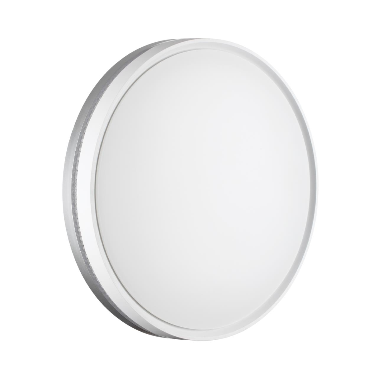 Светильник 7670/DL линии NOHAVA GREY состоит из металлического основания (базы) и пластикового рассеивателя. Материал рассеивателя - высококачественный пластик марки PMMA 2.0 белого цвета с матовой поверхностью. Пластик обеспечивает светильнику равномерное рассеивание и хорошее светопропускание. Форма плафона: круглая, декорирована ободом из пластика светло-серого цвета у основания светильники и белого цвета у внешнего края. Обод украшен прозрачной декоративной вставкой "под хрусталь". Степень защиты IP43 позволяет использовать светильник в определенных зонах влажных помещений. В комплект входит заменяемый LED модуль с линзами, мощностью 48Вт, которая соответствует лампе накаливания 460Вт. Источник света имеет комфортную цветовую температуру 4000К (белый свет).