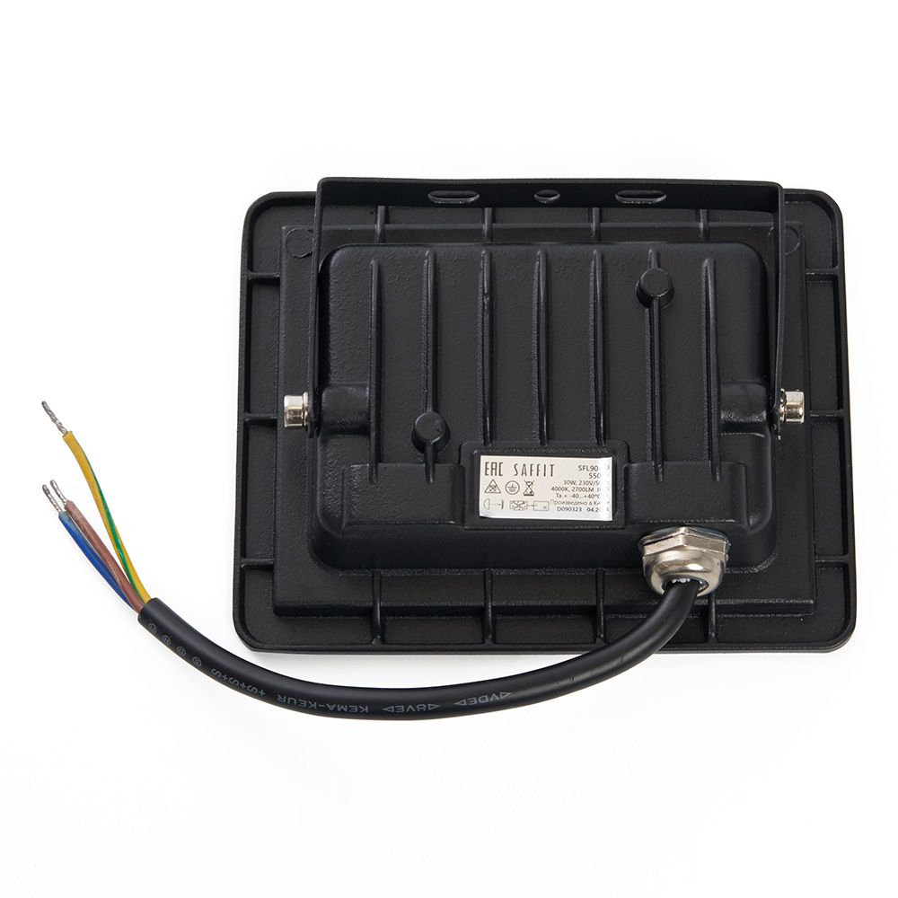 Прожектор светодиодный многоматричный с монтажным креплением на кронштейн, (ДО) SAFFIT SFL90-30, 30W, 4000К (белый), 230V/50Гц, 2700Lm, IP65, угол рассеивания 120°,*SMD2835, раб.t -40°C - +40°C, цвет чёрный, корпус алюминий литой под давлением + стекло, 117*92*27,5 мм