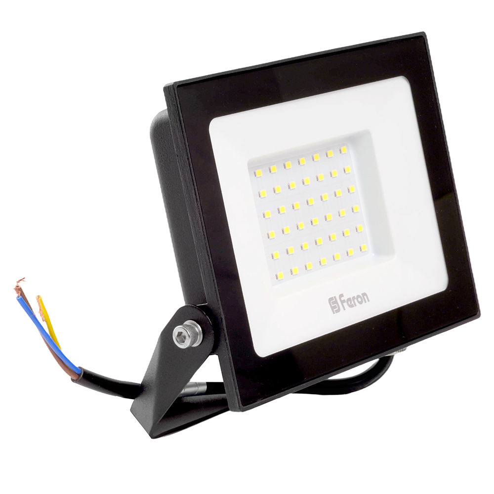 Прожектор светодиодный многоматричный с монтажным креплением на кронштейн, (ДО) FERON LL-921, 50W, 4000К (белый), 230V/50Гц, 5000Lm, IP65, угол рассеивания 120°,*SMD2835, раб.t -40°C - +40°C, цвет чёрный, корпус алюминий литой под давлением + стекло, 174*151*29 мм