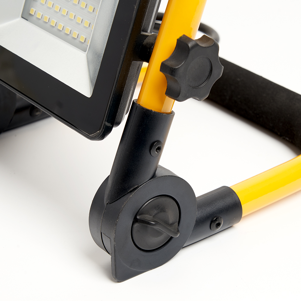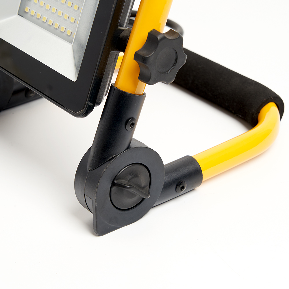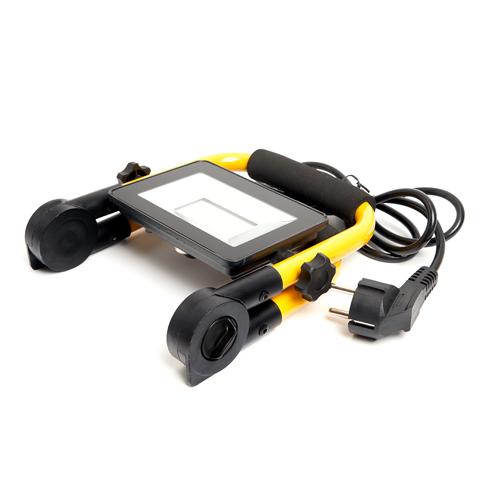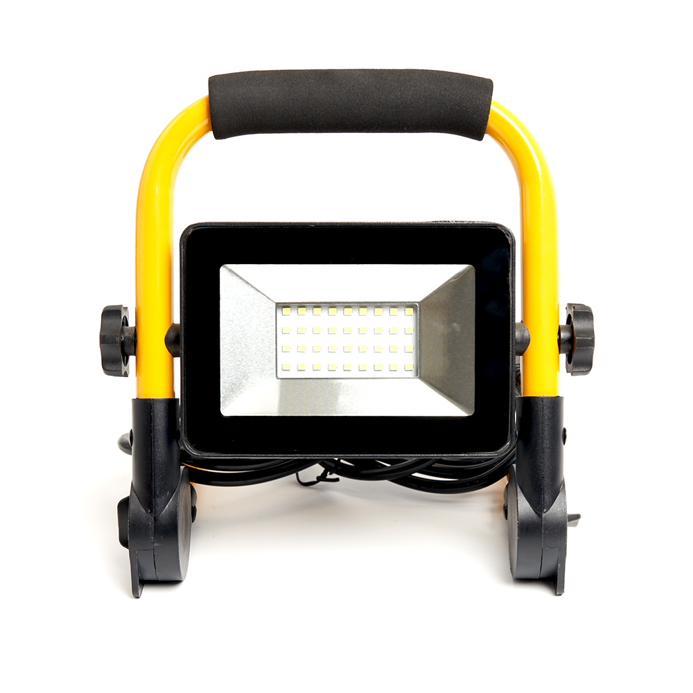 Прожектор светодиодный переносной с ручкой, (ДО) FERON LL-512, 30W, 6400К (холодный белый), 220-240V/50Гц, 2700Lm, IP65, угол рассеивания 120°,*SMD2835, раб.t -40°C - +45°C, цвет черный-желтый, корпус алюминий литой под давлением + стекло, 200*45*210 мм