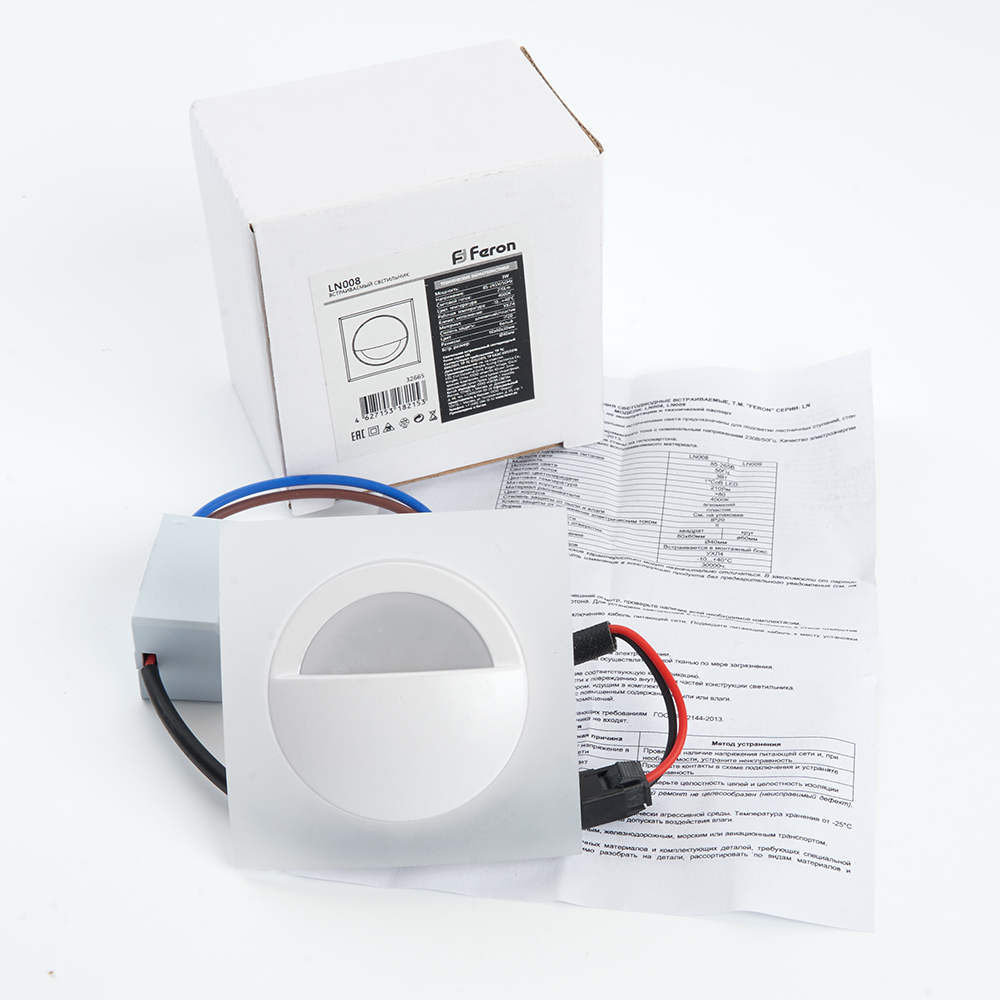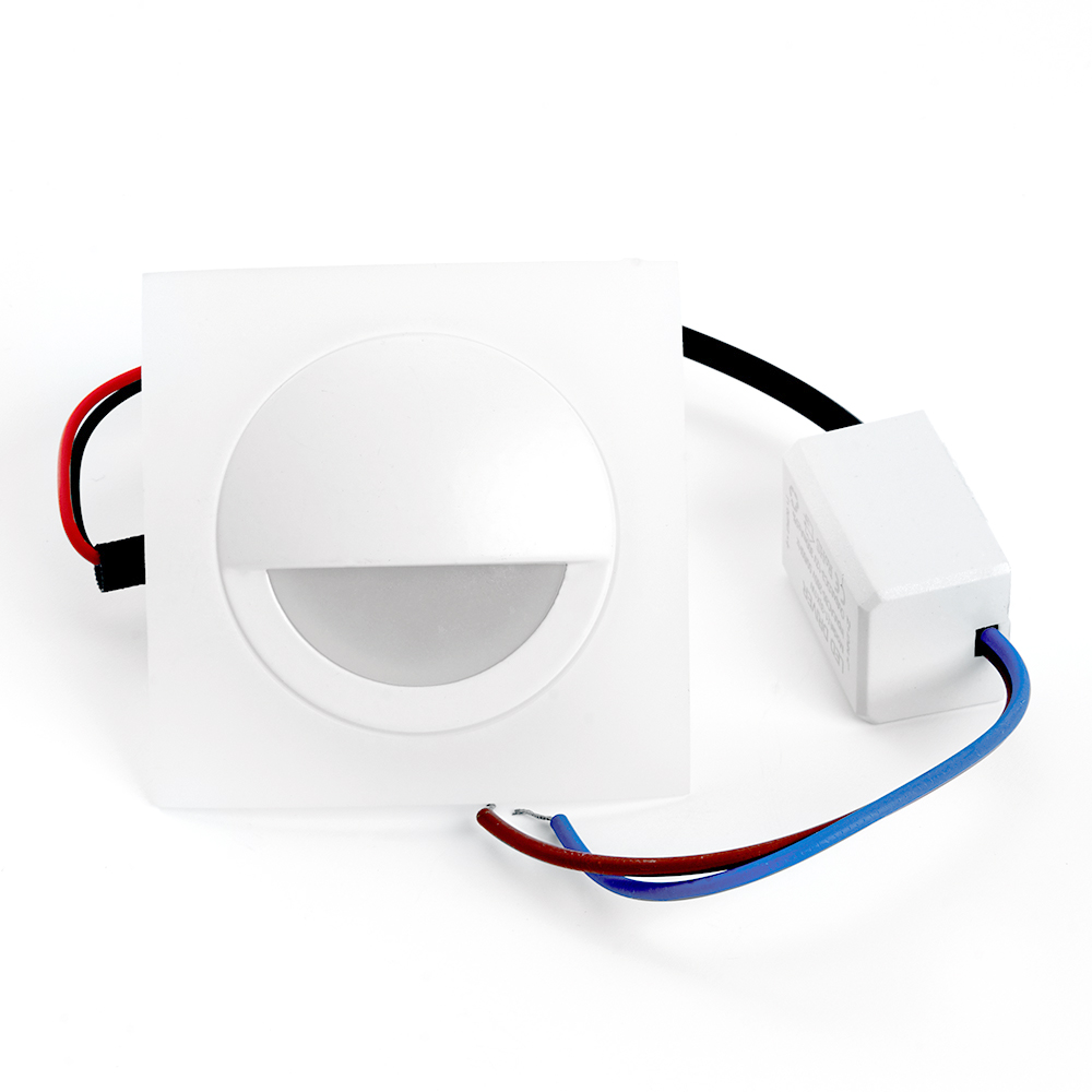Светильник встраиваемый светодиодный, для лестничной подсветки (ДВО) FERON LN008, 3W 4000К (белый), 85-265V, 210Lm, IP20, цвет белый, корпус алюминий, рассеиватель акриловый полимер, 60*60*33 мм, монтажн.отв. 40 мм.