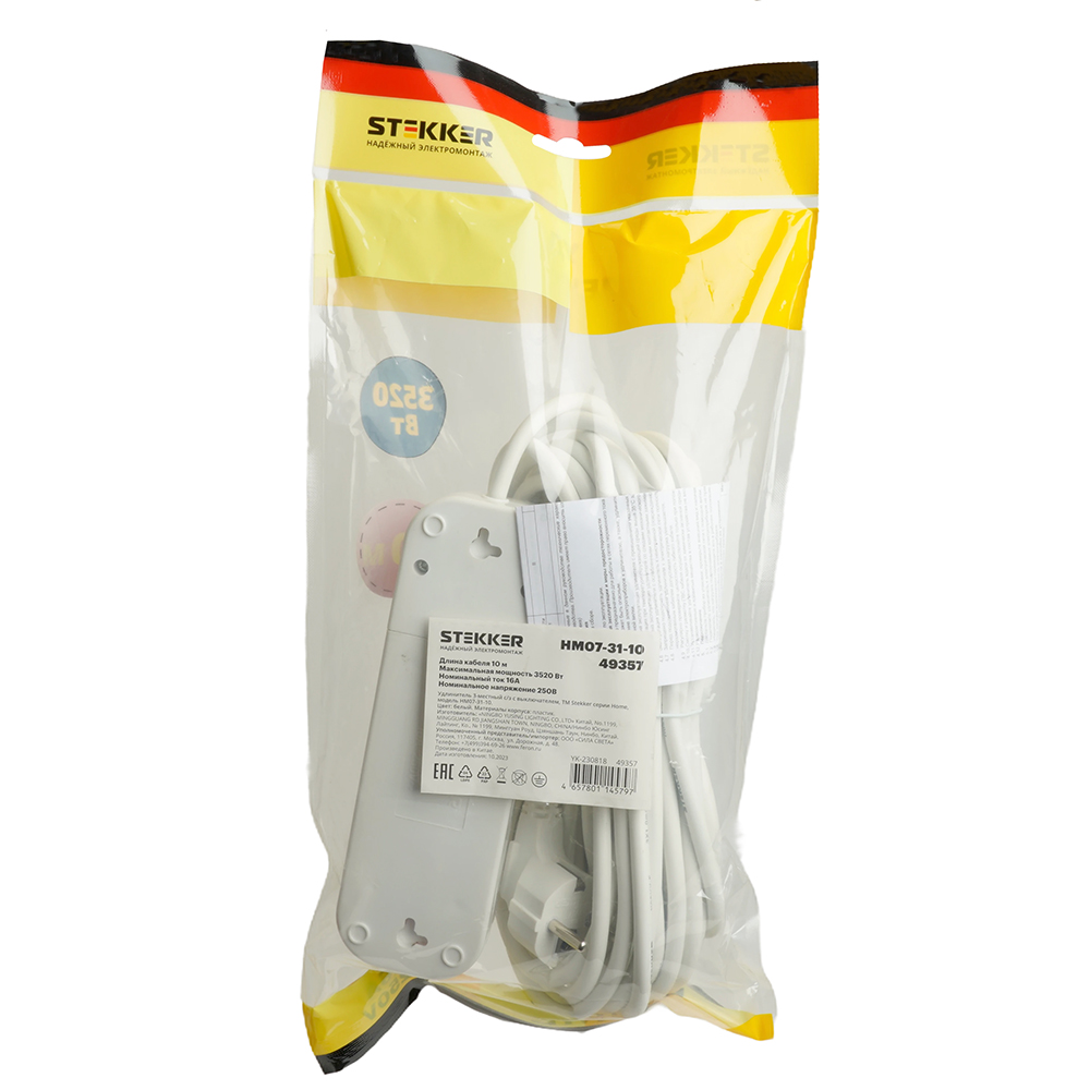 Удлинители STEKKER 49357, серия Home, цвет белый, длина 10 м, количество розеток 3, сталь, сечение кабеля 1 мм2, тип кабеля ПВС, материал кабеля -, ток 16А, напряжение 250В, максимальная нагрузка 3520Вт, тип вилки - прямая. Диапазон рабочих температур +1..+35°C, степень защиты IP20, класс защиты от поражения эл. током 1, размеры изделия -*-*-. Гарантия 1 год.