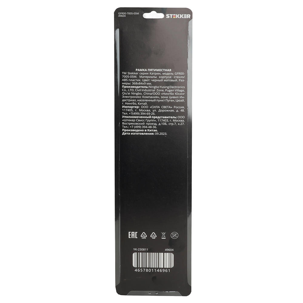 Рамка STEKKER GFR00-7005-05М на гнездо, , . Материал: Стекло/ABS пластик, цвет черный матовый, размер 368*84*9мм. Номинальное напряжение , номинальный ток , диапазон рабочих температур ,