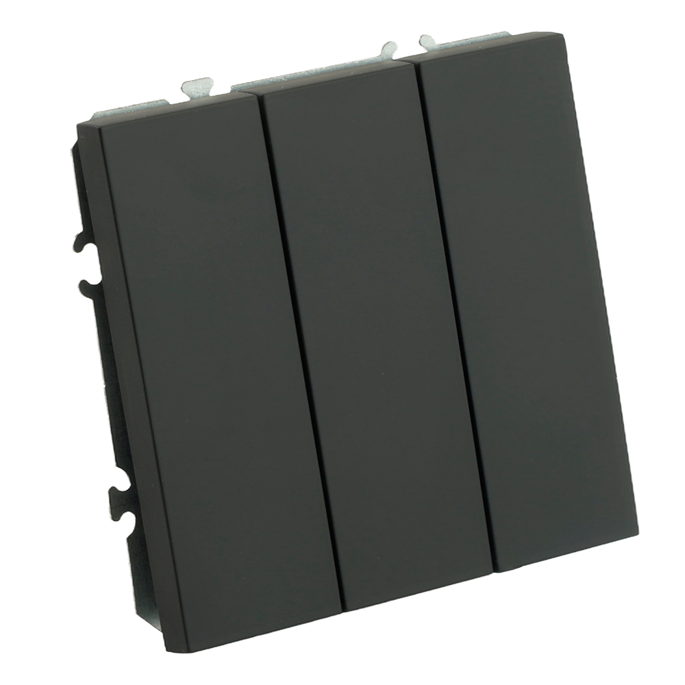 Выключатели трехклавишный STEKKER RSW10-5108-05, серия Эмили тип установки - скрытый, размер изделия 71*71*40мм., цвет черный уголь, soft touch, материал изделия поликарбонат, латунь, сталь. Номинальное напряжение 250 , номинальный ток 10А, 20