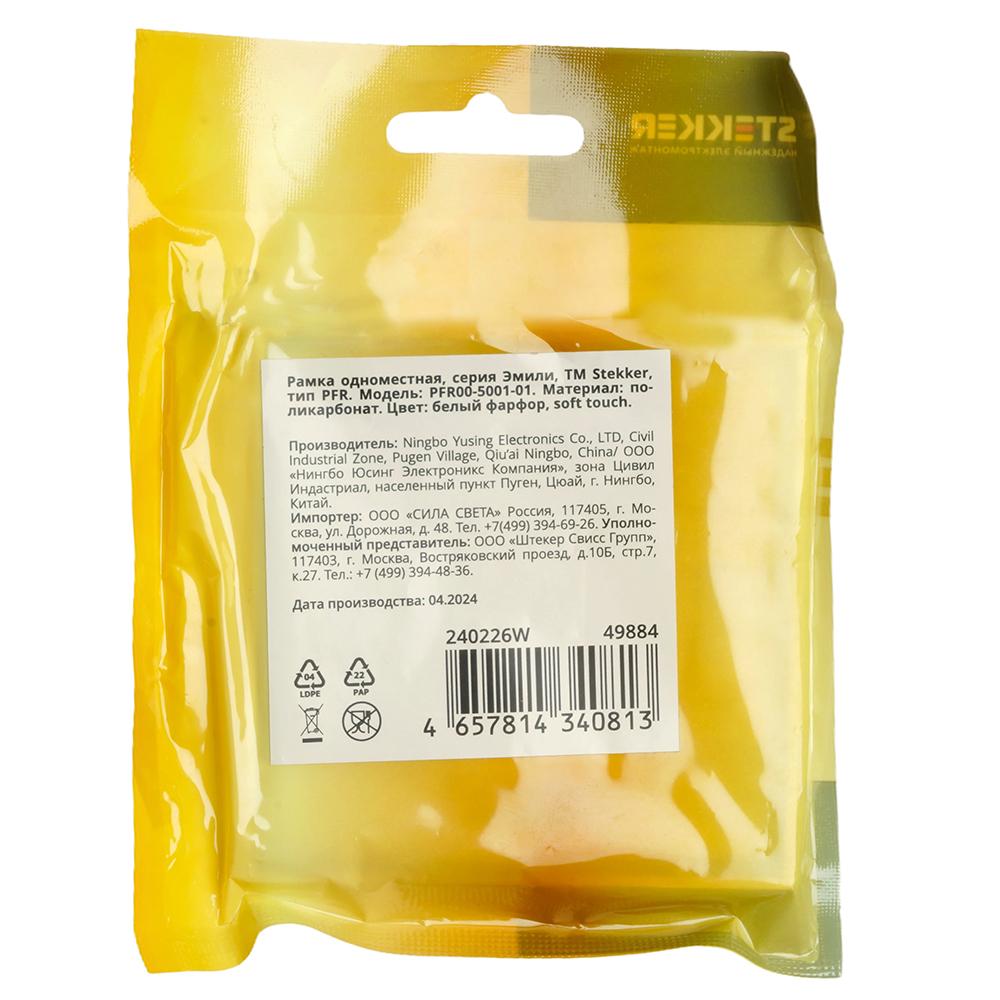 Рамка STEKKER PFR00-5001-01 на гнездо, , . Материал: поликарбонат, цвет белый фарфор, soft touch, размер 82*82*9,4мм. Номинальное напряжение , номинальный ток , диапазон рабочих температур ,