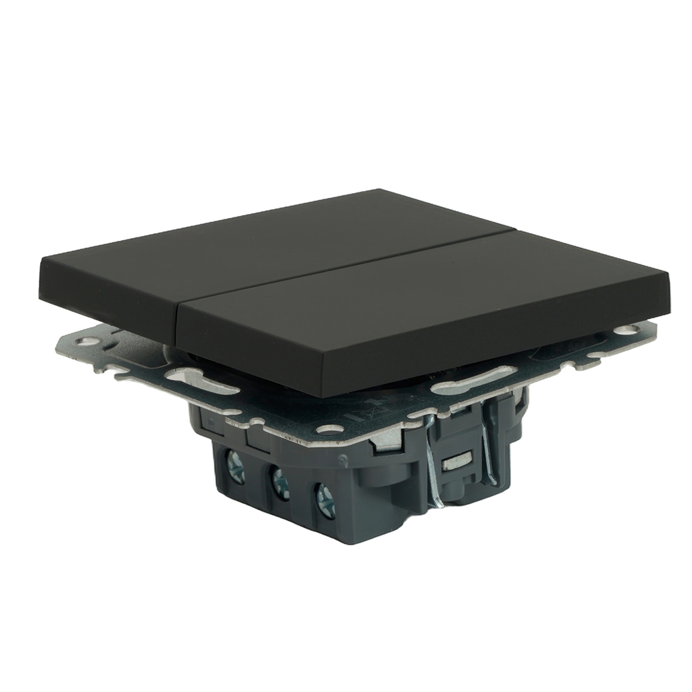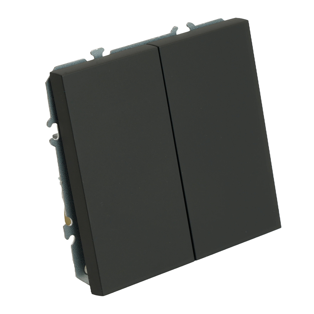 Выключатели двухклавишный STEKKER RSW10-5107-05, серия Эмили тип установки - скрытый, размер изделия 71*71*40мм., цвет черный уголь, soft touch, материал изделия поликарбонат, латунь, сталь. Номинальное напряжение 250 , номинальный ток 10А, 20