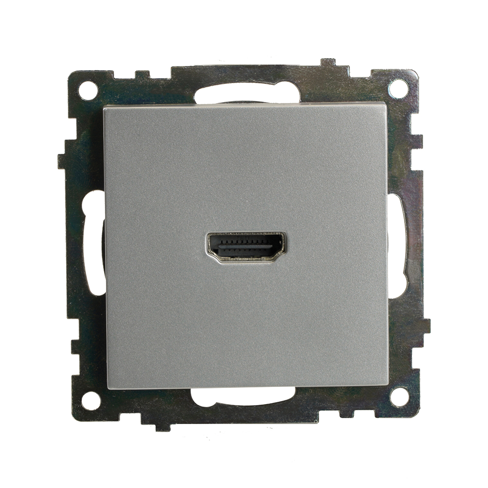 Розетка STEKKER GLS00-7118-03 (стандарт : HDMI 2.1¶Тип разъема : HDMI type A¶полоса пропускания видео-сигнала: 3 Ггц¶разрешение видео-сигнала : поддерживает разрешения до 4K (3840x2160 при 60 Гц)¶скорость передачи данных : 6 Гбит/сек¶) на 1 гнездо, -. Материал: поликарбонат, латунь, цвет серебро, размер 55*55*35мм. Номинальное напряжение -, номинальный ток 1A, диапазон рабочих температур 0..+35°C, IP20