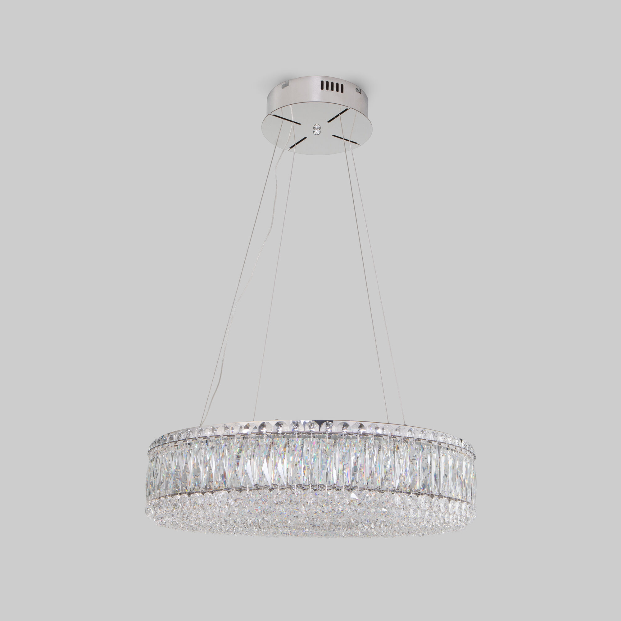Светодиодная люстра Iride сочетает в себе современную форму и классическую роскошь хрусталя.