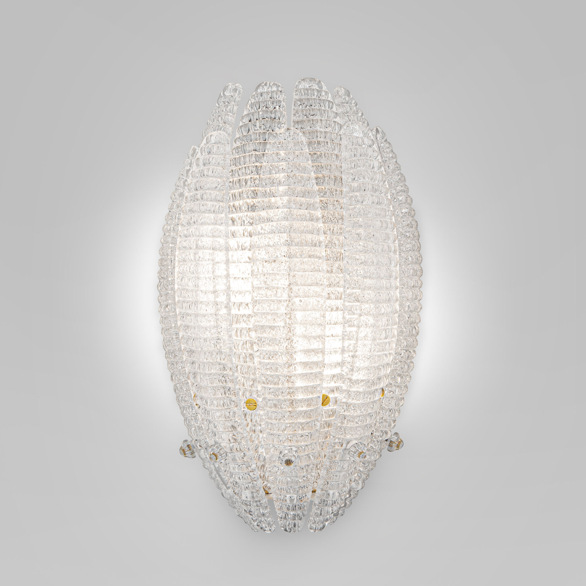 Тонкое стекло, словно лепестки живого цветка, бережно хранит внутри мерцание алмазной крошки. При включённом свете он оживает: тысячи крошечных граней вспыхивают, рассыпая по стенам причудливую игру бликов.