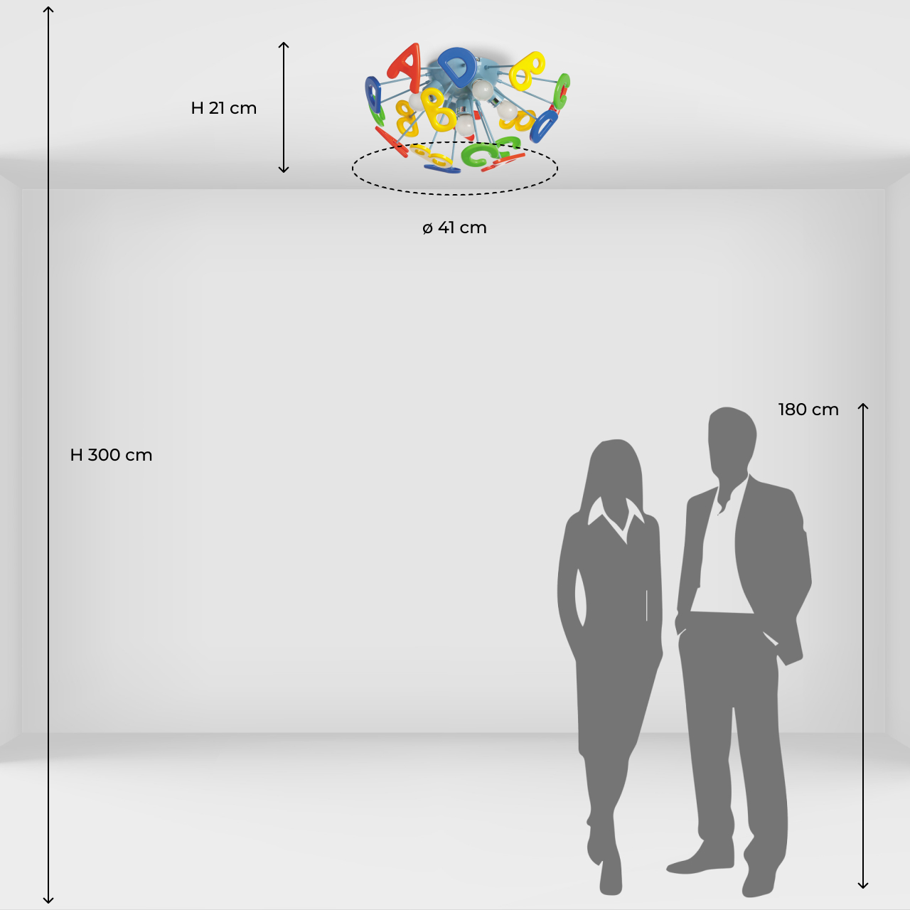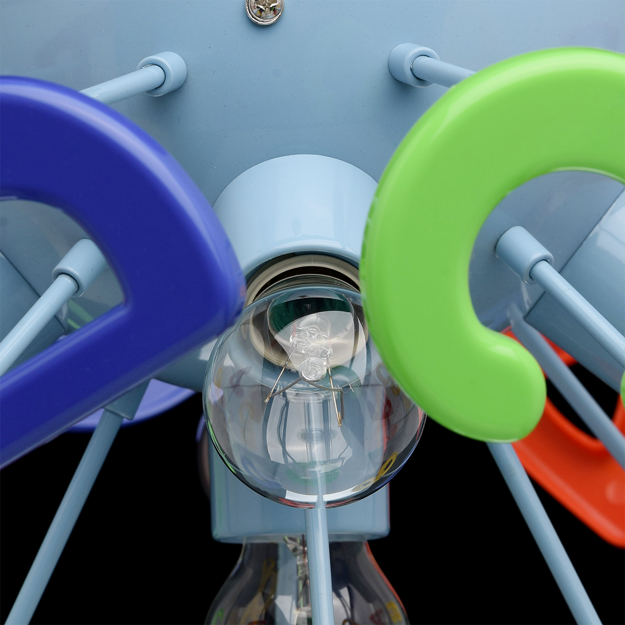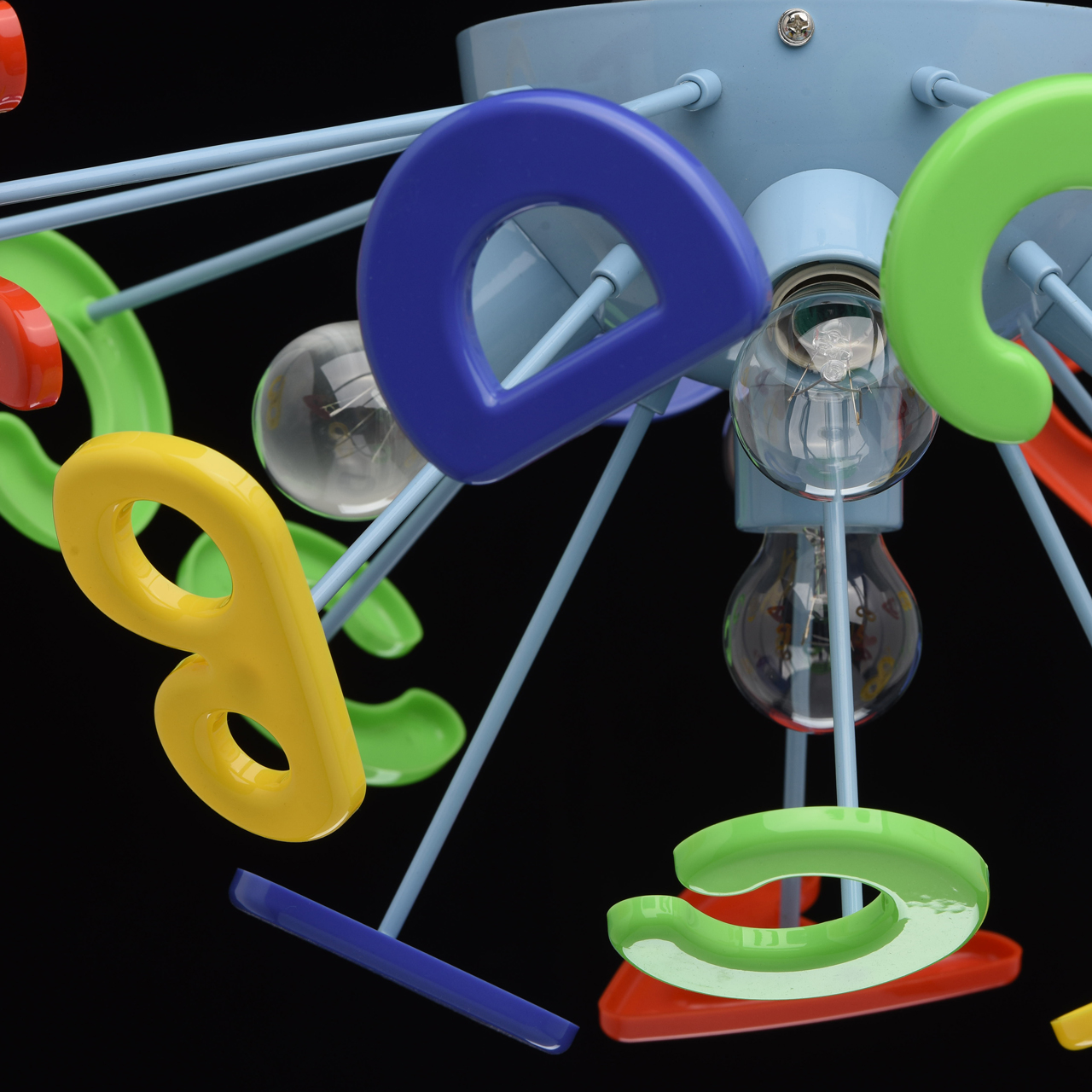Эта яркая и необычная люстра из коллекции «Улыбка» станет отличным дополнением любой детской комнаты. Её радужный, цветной дизайн всегда будет вносить в обстановку ребяческую непосредственность и беззаботность. Основание люстры выполнено из окрашенного металла и удачно сочетается с абажуром в виде красочных разноцветных букв, изготовленных из высококачественного пластика. Такая люстра станет источником не только света, но и позитива! Рекомендуемая площадь освещения порядка 10 кв.м.